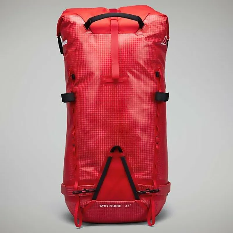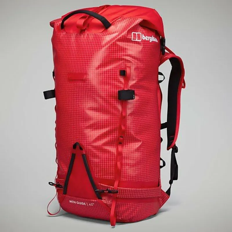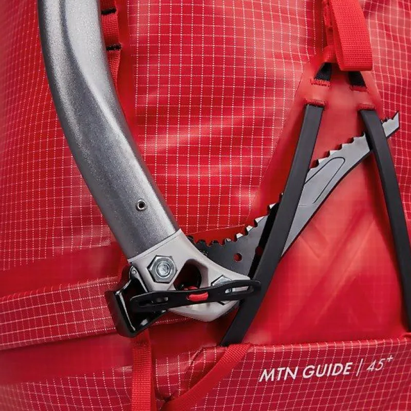 The MTN Guide 45+ is a true mountain all-rounder that performs year round across all disciplines. The 45L capacity can be increased for extended days out in the mountains, allowing for more time ski-touring, ice climbing, or summer cragging. The versatility of the MTN Guide 45+ makes this the perfect pack for those that want to take on the multiple activities in the mountains.The MTN Guide 45+ is constructed from 100% recycled 400D nylon, with a 600D dope-dyed polyester ripstop. The external TPU coating adds durability and water resistance. All plastic components are made from recycled nylon and are also oversized for extra strength.