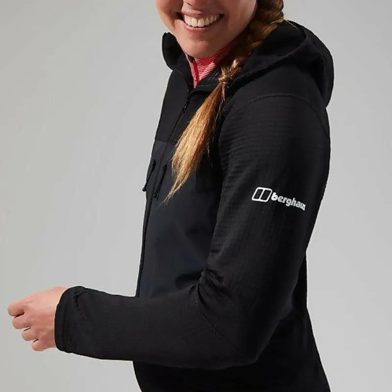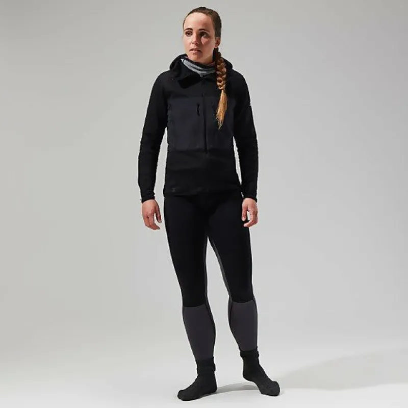 The Women’s MTN Guide MW Hoody helps you maintain optimum temperature and comfort. Pushing hard in the mountains means sweat. In cold conditions you can’t afford for your layers to become saturated or you’ll get cold, fast. That’s why layering and fabrics are so important. Using Polartec® Power Grid™ this hoody is fast wicking and quick drying, whilst remaining lightweight. With its built in Polartec® Power Wool™ neck gaiter / mask it provides amazing comfort and performance. This is quite simply everything you need from a mid-layer for high output activities in cold conditions. Product weight is 285g (Size UK 12).
